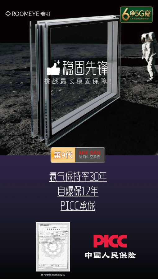 ??穩固先鋒:填充氬氣保持率達30年!自爆率保12年!更有PICC承保,讓您用窗無憂,挑戰長穩固保障;